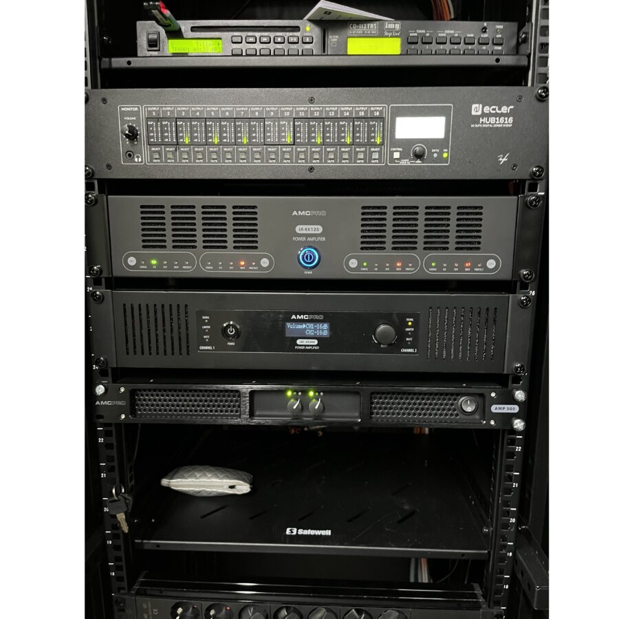 Στο χώρο του αμφιθεάτρου εγκαταστάθηκαν νέες κονσόλες, μίκτες και ενισχυτές ήχου καθώς και DMX φωτισμός σκηνής βελτιώνοντας την εμπειρία των επισκεπτών στις εκδηλώσεις του ξενοδοχείου.